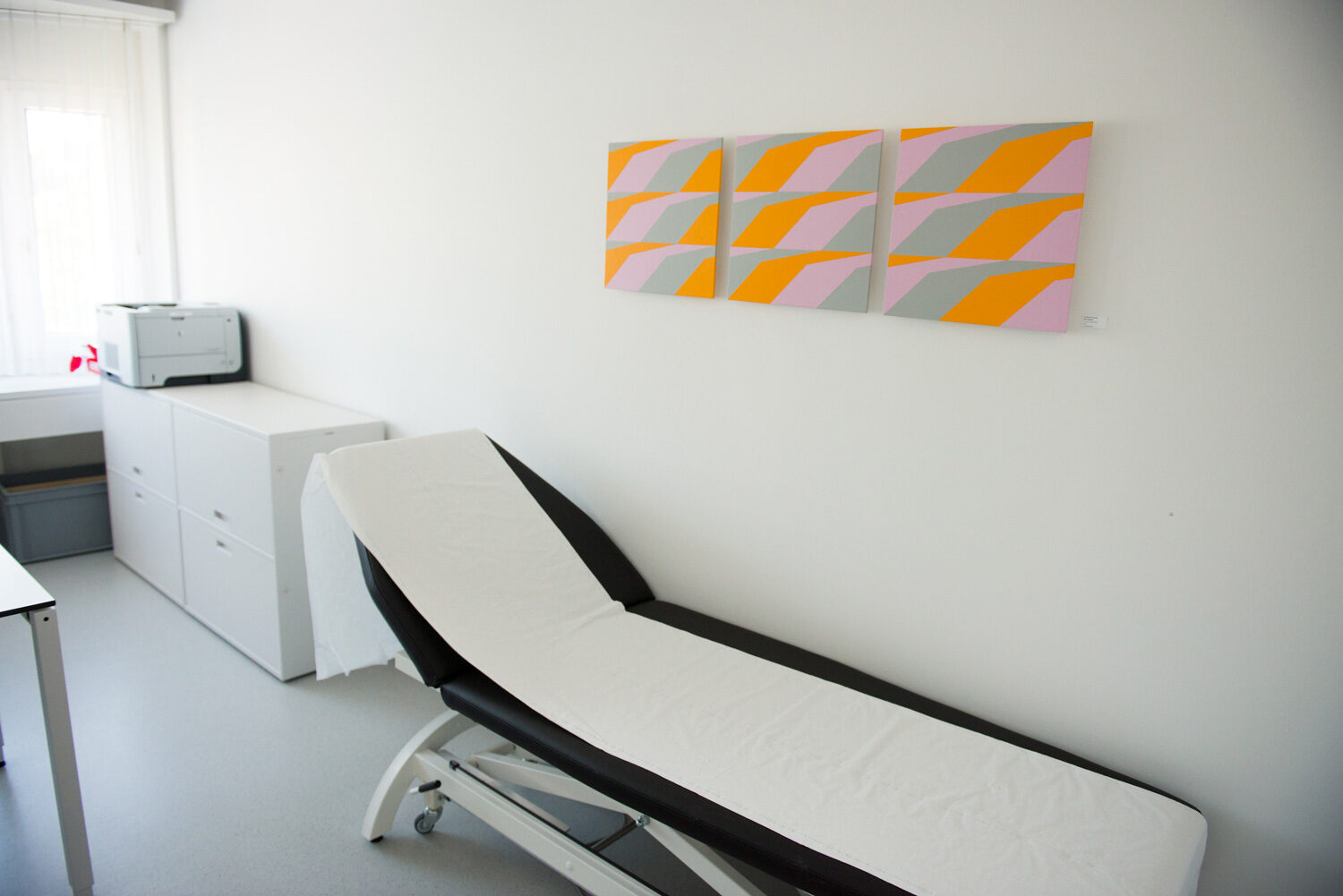Geometrisch, grafische und minimalistische Malerei auf Leinwand sowie Objekte