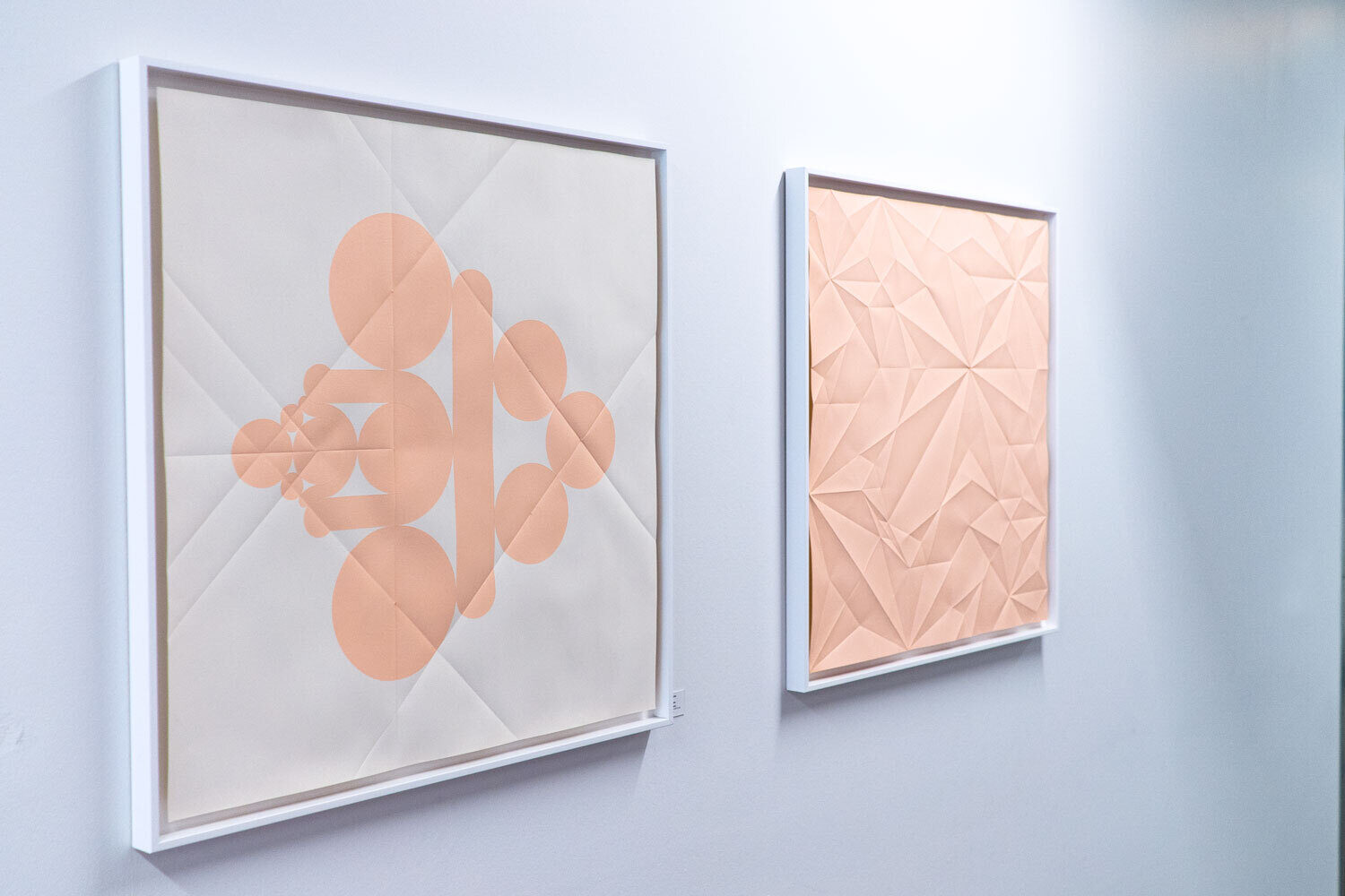 Geometrische Faltbilder in Origamitechnik, bemalt in Acryl